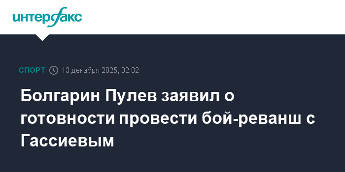 Москва. 13 декабря. INTERFAX.RU - Болгарский боксер Кубрат Пулев заявил, что готов выйти на бой-реванш с россиянином Муратом Гассиевым, которому он уступил титул регулярного чемпиона WBA в тяжелом весе.