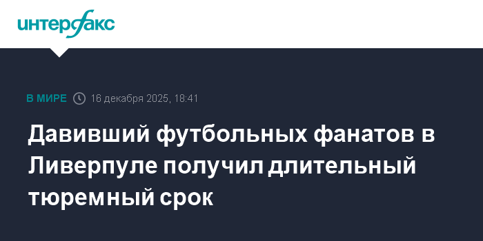Москва. 16 декабря. INTERFAX.RU - Пол Дойл, в мае 2025 года въехавший на машине в толпу футбольных фанатов в Ливерпуле, приговорен к 21 году и шести месяцам тюрьмы, сообщает Sky News.