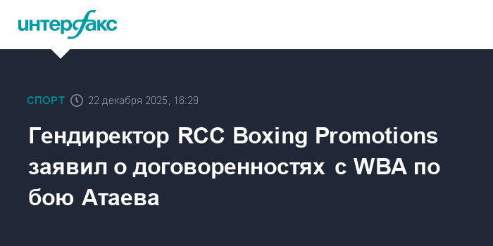 Москва. 22 декабря. INTERFAX.RU - Двукратного чемпиона мира россиянина Шарабутдина Атаева в 2026 году ожидает статусный бой, заявил генеральный директор RCC Boxing Promotions Герман Титов. Он сообщил, что достигнута соответствующая договоренность со Всемирной боксерской ассоциацией (WBA).