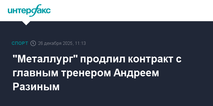 Москва. 26 декабря. INTERFAX.RU - Андрей Разин подписал новое соглашение с "Металлургом", сообщается на сайте магнитогорского хоккейного клуба.
