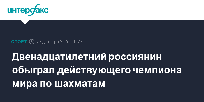 Двенадцатилетний россиянин обыграл действующего чемпиона мира по шахматам