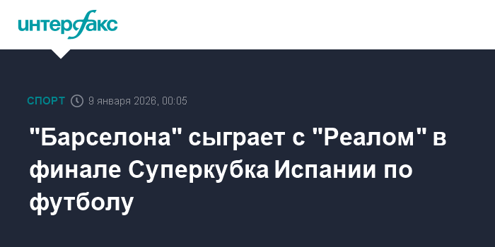 Москва. 9 января. INTERFAX.RU - "Барселона" и "Реал" составили финальную пару розыгрыша Суперкубка Испании по футболу.