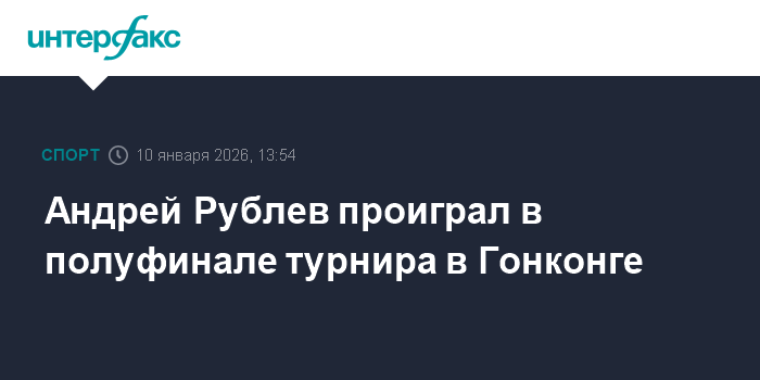 Москва. 10 января. INTERFAX.RU - Российский теннисист Андрей Рублев уступил итальянцу Лоренцо Музетти в 1/2 финала турнира АТР 250 в Гонконге.