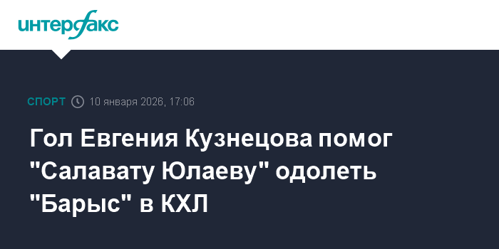 Гол Евгения Кузнецова помог "Салавату Юлаеву" одолеть "Барыс" в КХЛ