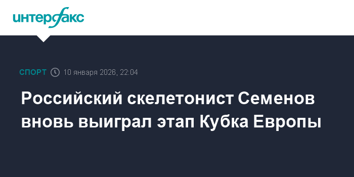Москва. 10 января. INTERFAX.RU - Россиянин Владислав Семенов стал победителем этапа Кубка Европы по скелетону в Инсбруке.