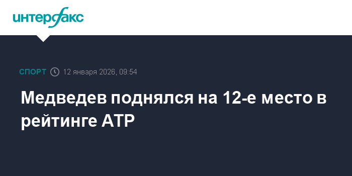 Москва. 12 января. INTERFAX.RU - Россиянин Даниил Медведев улучшил свои позиции в рейтинге Ассоциации теннисистов-профессионалов (ATP), обновленная версия которого опубликована в понедельник на сайте организации.