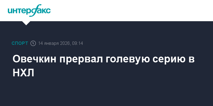 Российский нападающий "Вашингтона" Александр Овечкин очков результативности не набрал, в результате прервав голевую серию, составившую четыре матча.