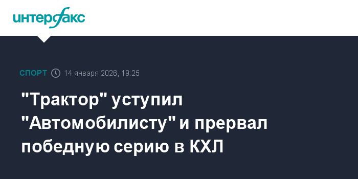 Москва. 14 января. INTERFAX.RU - Екатеринбургский "Автомобилист" со счетом 4:1 выиграл у челябинского "Трактора" в матче регулярного чемпионата Континентальной хоккейной лиги.