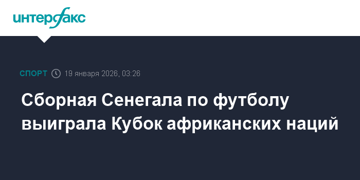 Москва. 19 января. INTERFAX.RU - Футболисты сборной Сенегала со счетом 1:0 победили Марокко в финале Кубка африканских наций в Марокко.