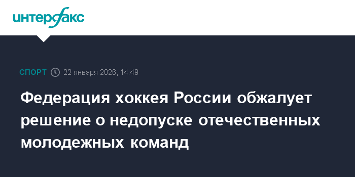 Федерация хоккея России обжалует решение о недопуске отечественных молодежных команд
