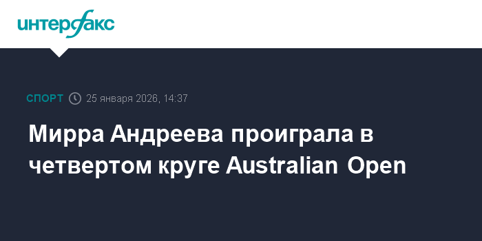 Москва. 25 января. INTERFAX.RU - Россиянка Мирра Андреева уступила украинке Элине Свитолиной в четвертом круге проходящего в Мельбурне теннисного турнира Большого шлема AustralianOpen-2026.
