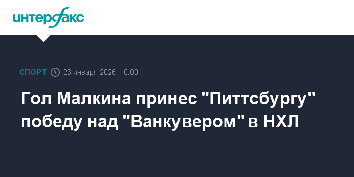 Москва. 26 января. INTERFAX.RU - "Питтсбург" со счетом 3:2 обыграл "Ванкувер" в матче регулярного чемпионата Национальной хоккейной лиги.