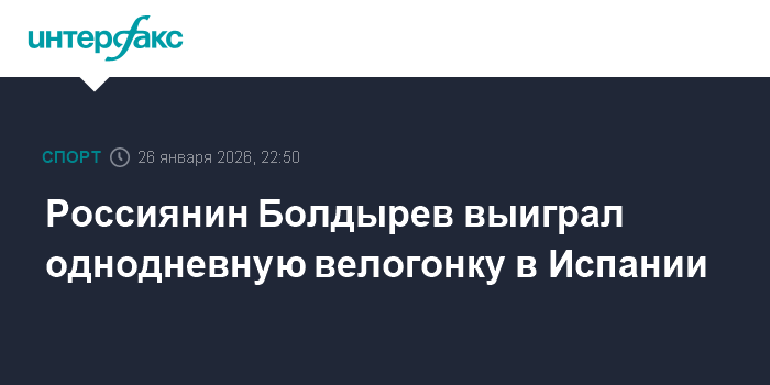 Москва. 26 января. INTERFAX.RU - Российский велогонщик испанской команды Baix Ebre Penya Ciclista Матвей Болдырев финишировал первым на однодневной гонке Trofeu Josep Florencio в Испании.