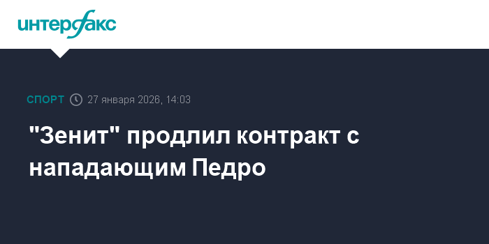 Москва. 27 января. INTERFAX.RU - "Зенит" подписал новое соглашение с бразильским форвардом Педро, сообщает пресс-служба петербургского футбольного клуба.