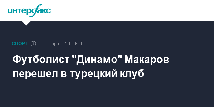 Футболист "Динамо" Макаров перешел в турецкий клуб