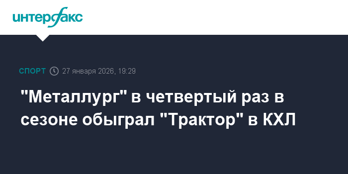 Москва. 27 января. INTERFAX.RU - Магнитогорский "Металлург" со счетом 3:2 выиграл у "Трактора" в матче регулярного чемпионата Континентальной хоккейной лиги.
