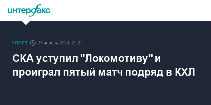 Москва. 27 января. INTERFAX.RU - Ярославский "Локомотив" со счетом 3:1 обыграл петербургский СКА в матче регулярного чемпионата Континентальной хоккейной лиги.