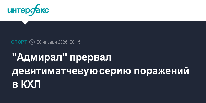Москва. 28 января. INTERFAX.RU - Владивостокский "Адмирал" со счетом 5:2 взял верх над астанинским "Барысом" в матче регулярного чемпионата Континентальной хоккейной лиги.
