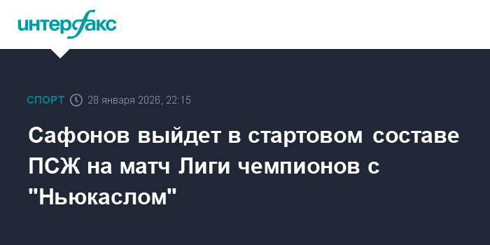 Москва. 28 января. INTERFAX.RU - Вратарь сборной России по футболу Матвей Сафонов включен в стартовый состав "Пари Сен-Жермен" на матч заключительного, восьмого тура основной стадии Лиги чемпионов УЕФА против английского "Ньюкасла".