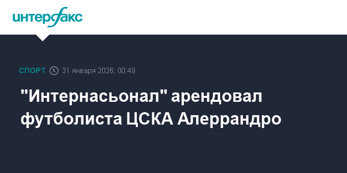 Москва. 31 января. INTERFAX.RU - Нападающий ЦСКА Алеррандро перешел в бразильский "Интернасьонал" на правах аренды, сообщает пресс-служба московского футбольного клуба.