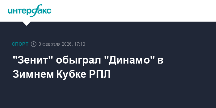 Москва. 3 февраля. INTERFAX.RU - Футболисты петербургского "Зенита" со счетом 2:1 победили московское "Динамо" в стартовом матче розыгрыша Зимнего Кубка РПЛ.