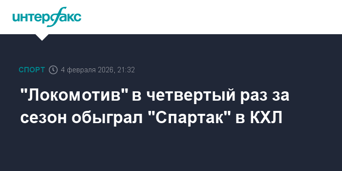 Таким образом, "Локомотив" обыграл "Спартак" в текущем сезоне в четвертый раз. 6 ноября 2025 года ярославцы победили дома со счетом 5:2, 12 ноября в Москве – 6:3, 25 января нынешнего года на своем льду – 3:2 (в овертайме).