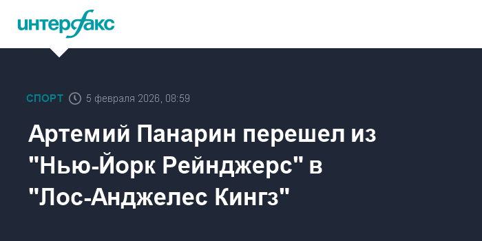 Москва. 5 февраля. INTERFAX.RU - Российский нападающий Артемий Панарин стал игроком "Лос-Анджелес Кингз", сообщается на сайте клуба Национальной хоккейной лиги.