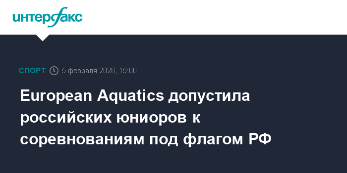 Москва. 5 февраля. INTERFAX.RU - Европейская федерация водных видов спорта (European Aquatics) разрешила российским и белорусским спортсменам выступать в соревнованиях среди юниоров под государственной символикой их стран. Об этом говорится в заявлении организации.