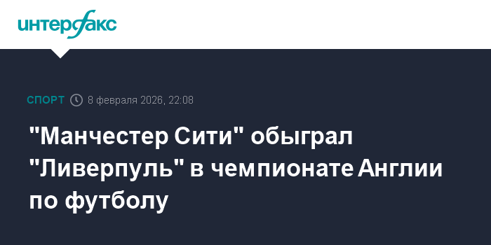 Москва. 8 февраля. INTERFAX.RU - Футболисты "Манчестер Сити" со счетом 2:1 взяли верх над "Ливерпулем" в 25-м туре чемпионата Англии.