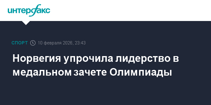 Москва. 10 февраля. INTERFAX.RU - Норвегия продолжает лидировать в неофициальном зачете проходящих в Италии зимних Олимпийских игр.