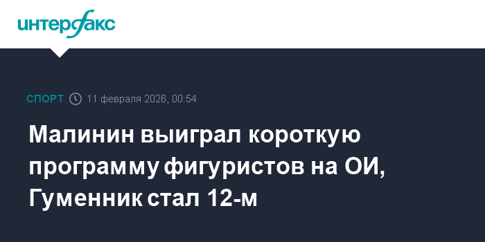 Москва. 11 февраля. INTERFAX.RU - Американский фигурист Илья Малинин занимает первое место после короткой программы в мужском одиночном катании на зимних Олимпийских играх в Италии.
