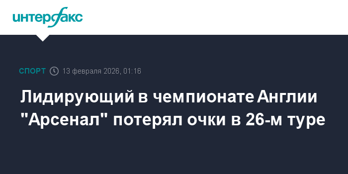 Лидирующий в чемпионате Англии "Арсенал" потерял очки в 26-м туре