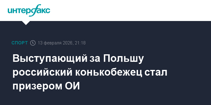 Москва. 13 февраля. INTERFAX.RU - Чемпион России, ныне выступающий под флагом Польши конькобежец Владимир Семирунний стал серебряным призером Олимпиады-2026 в забеге на 10000 м.
