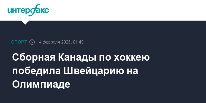 Москва. 14 февраля. INTERFAX.RU - Хоккеисты сборной Канады со счетом 5:1 взяли верх над Швейцарией в матче группового этапа зимних Олимпийских игр в Италии.