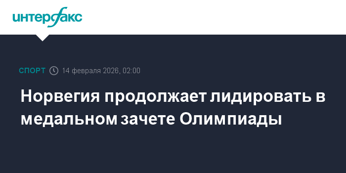 Москва. 14 февраля. INTERFAX.RU - По итогам седьмого соревновательного дня Олимпийских игр в Италии сборная Норвегии по-прежнему возглавляет общий медальный зачёт.