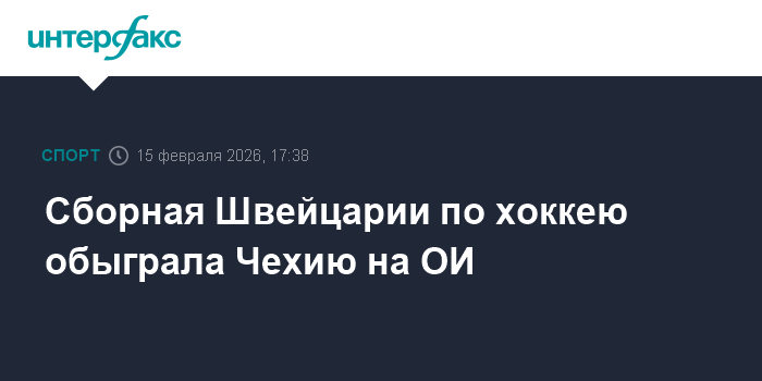 Москва. 15 февраля. INTERFAX.RU - Хоккеисты сборной Швейцарии в овертайме обыграли команду Чехии со счетом 4:3 в матче группового этапа зимних Олимпийских игр.