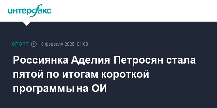 Москва. 18 февраля. INTERFAX.RU - Российская фигуристка Аделия Петросян занимает пятое место после короткой программы на зимних Олимпийских играх в Италии.