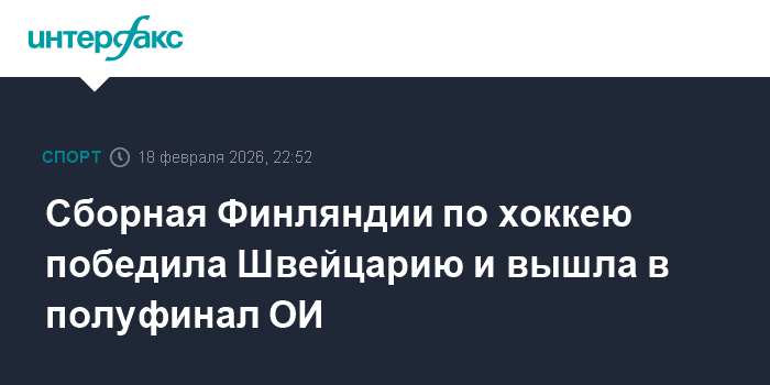 Москва. 18 февраля. INTERFAX.RU - Хоккеисты сборной Финляндии со счетом 3:2 в овертайме победили команду Швейцарии в матче 1/4 финала зимних Олимпийских игр-2026 в Милане.