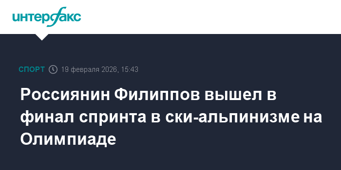 Москва. 19 февраля. INTERFAX.RU - Российский ски-альпинист Никита Филиппов завоевал путевку в финал спринта на зимних Олимпийских играх в Италии.