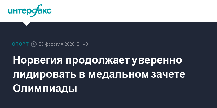 Москва. 20 февраля. INTERFAX.RU - По итогам очередного соревновательного дня зимних Олимпийских игр в Милане и Кортине-д'Ампеццо Норвегия сохранила прочное лидерство в неофициальном медальном зачете.