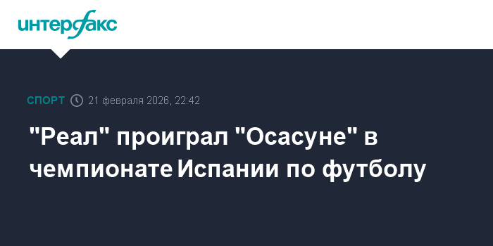 Москва. 21 февраля. INTERFAX.RU - Футболисты "Осасуны" со счетом 2:1 победили "Реал" в домашнем матче 25-го тура чемпионата Испании.