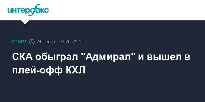 Москва. 24 февраля. INTERFAX.RU - Хоккеисты петербургского СКА со счетом 4:2 победили владивостокский "Адмирал" в матче регулярного чемпионата Континентальной хоккейной лиги и гарантировали себе участие в розыгрыше Кубка Гагарина.