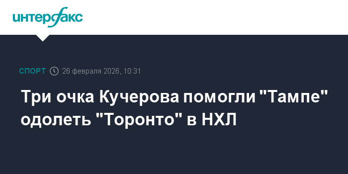 Три очка Кучерова помогли "Тампе" одолеть "Торонто" в НХЛ