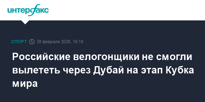 Москва. 28 февраля. INTERFAX.RU - Российским велогонщикам не удалось вылететь в Австралию через ОАЭ на этап Кубка мира. Об этом рассказала велогонщица Алина Лысенко.