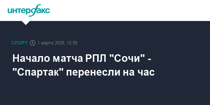 Москва. 1 марта. INTERFAX.RU - Российская премьер-лига все же перенесла начало матча 19-го тура чемпионата России по футболу между "Сочи" и московским "Спартаком".