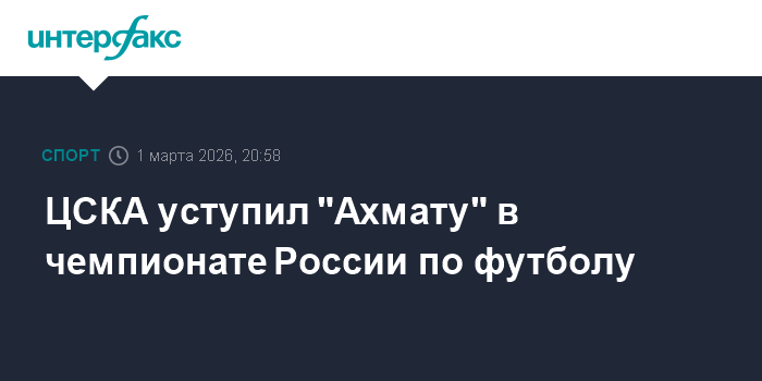 Москва. 1 марта. INTERFAX.RU - Футболисты грозненского "Ахмата" со счетом 1:0 победили московский ЦСКА в домашнем матче 19-го тура чемпионата России.