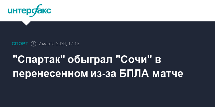 "Спартак" обыграл "Сочи" в перенесенном из-за БПЛА матче