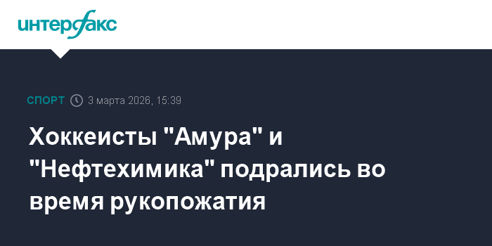Москва. 3 марта. INTERFAX.RU - Игроки хоккейных клубов "Амур" (Хабаровск) и "Нефтехимик" (Нижнекамск) устроили драку во время традиционного рукопожатия по окончании матча.