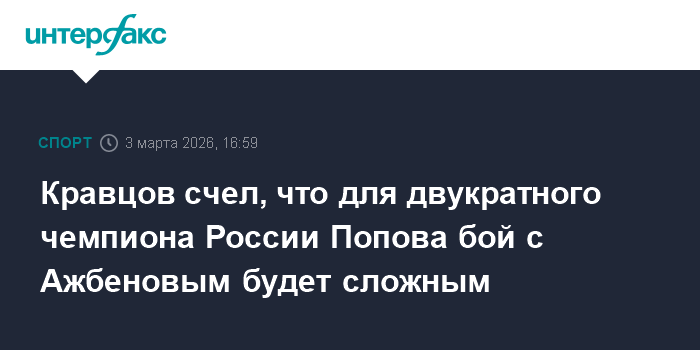 Кравцов счел, что для двукратного чемпиона России Попова бой с Ажбеновым будет сложным