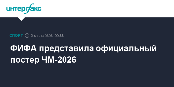 Москва. 3 марта. INTERFAX.RU - Международная федерация футбола (ФИФА) опубликовала на официальном сайте официальный постер чемпионата мира 2026 года, который пройдет в США, Канаде и Мексике.